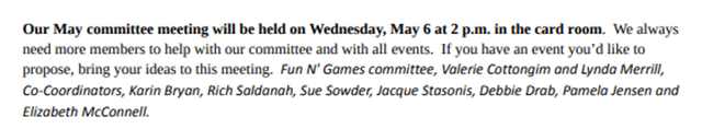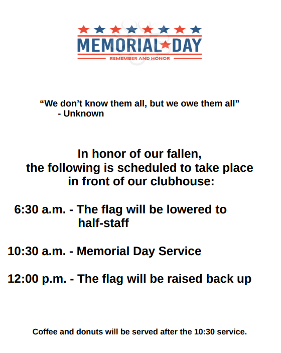 Keep up with events by viewing our Calendar online or printing it for your convenience.